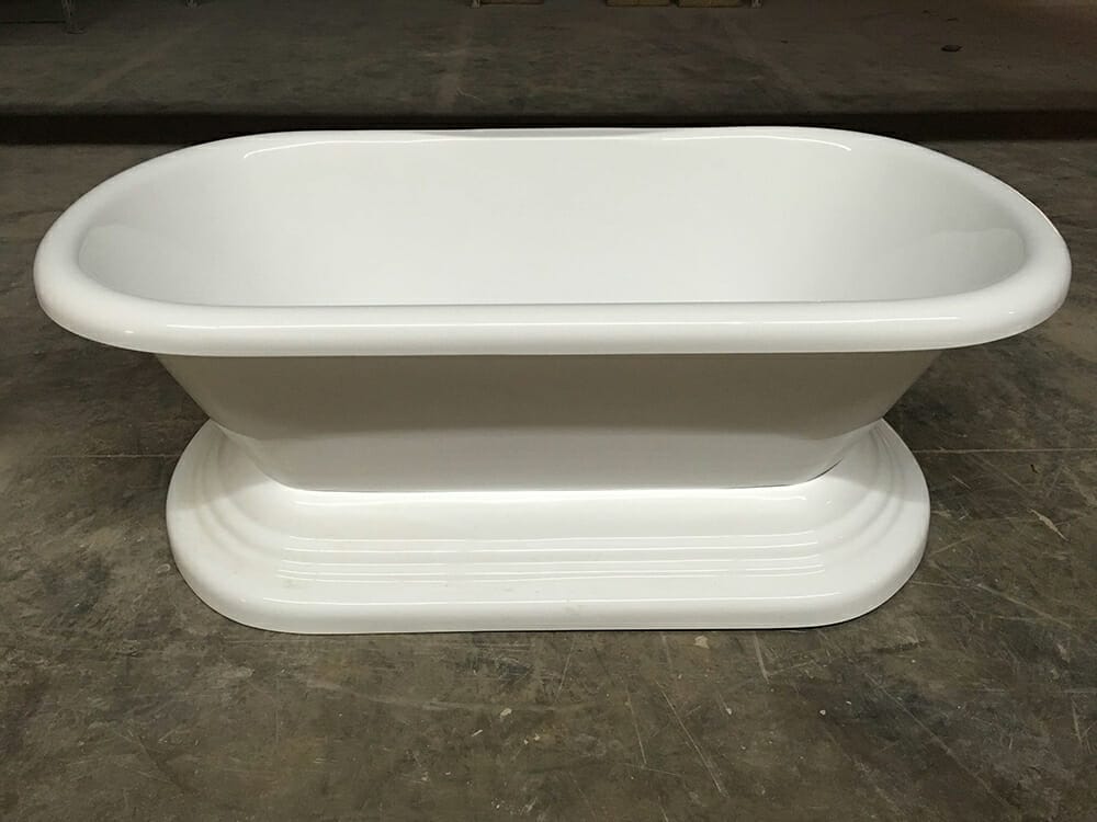 Rolled rim and pedestal base display this tubs classic beauty. The double ended acrylic tub easily adapts to a wide range of decor.